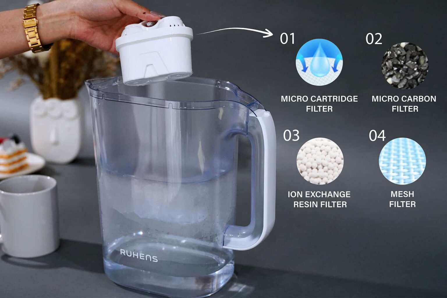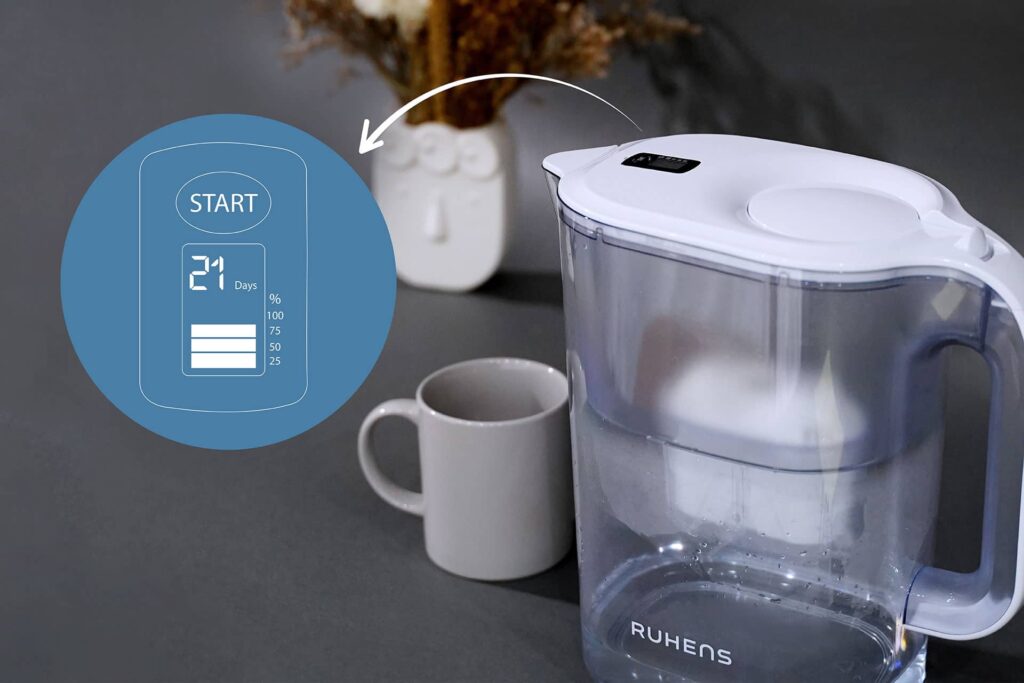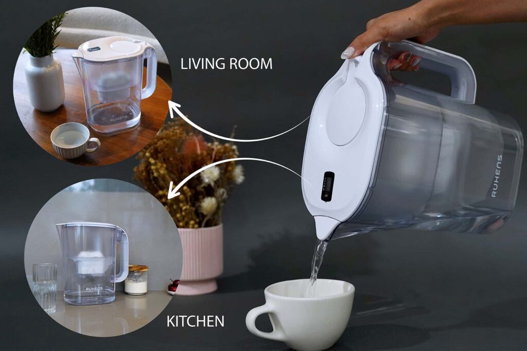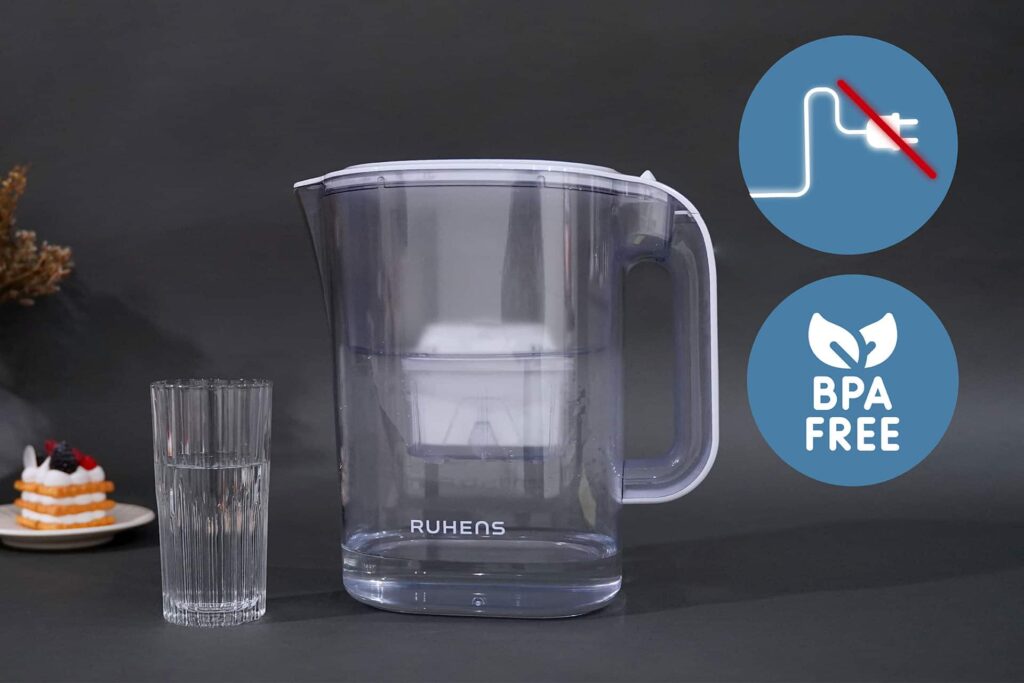 Ruhens PuriMax Pitcher purifies your water with premium 4-stage filtration without the use of electricity.